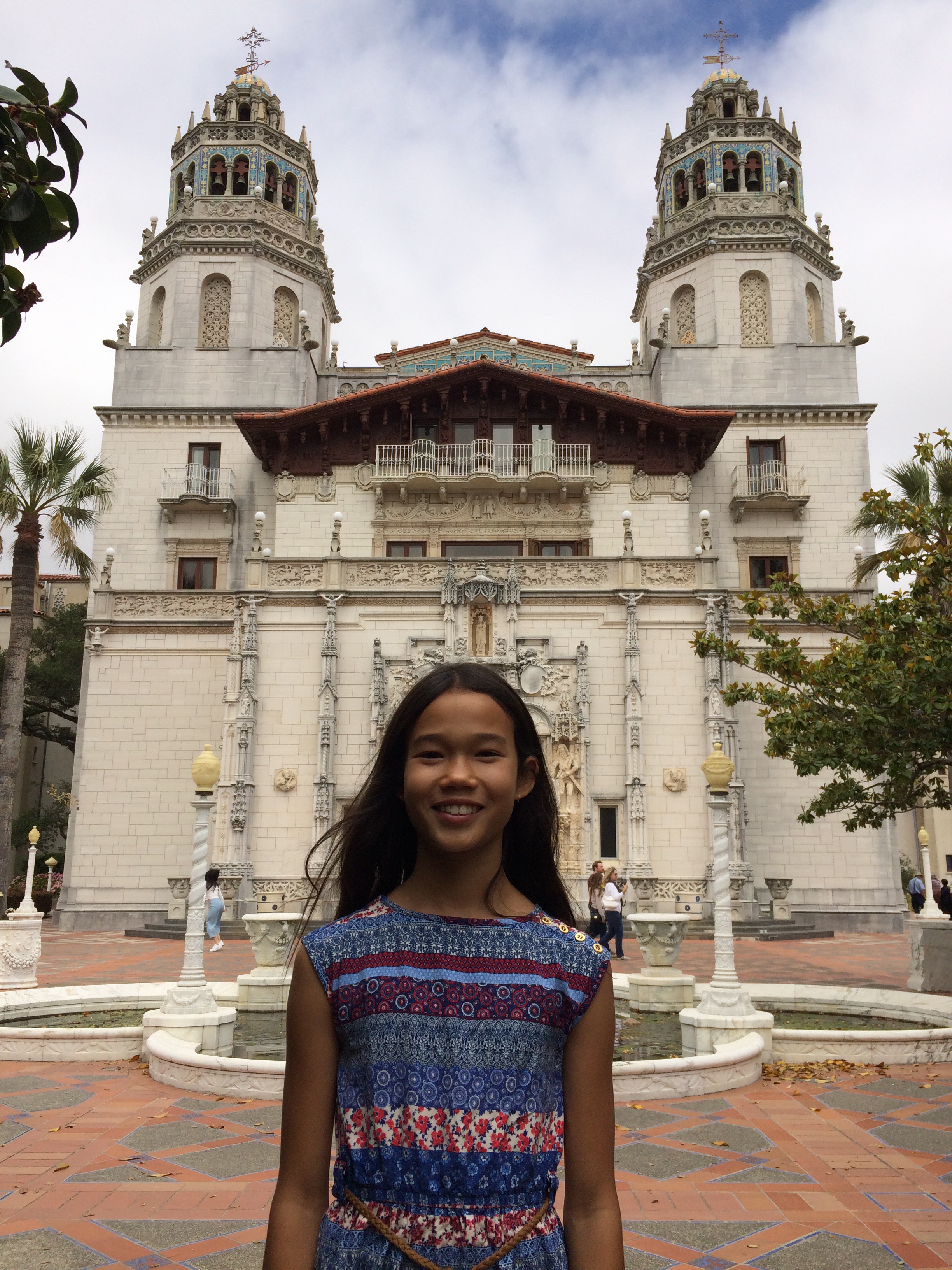 Recently I went to Hearst Castle. It is a beautiful place.The mansion is so big and grand no wonder they call it a castle. It is filled with artifacts from all over the world. It is more of a museum than a state park to me. There are many tours you can go to,but I only went to the grand rooms tour. Although the mansion has 115 rooms I only got to see some. But it’s still worth the money cause you get to look around outside, and there is a perfect view for taking photos. It was cloudy and a bit cold,the weather was in the 60’s. So I wore a shirt,leggings,and of course tennis shoes,I also brought a jacket. I chose a colorful shirt because there are lots of colors everywhere.