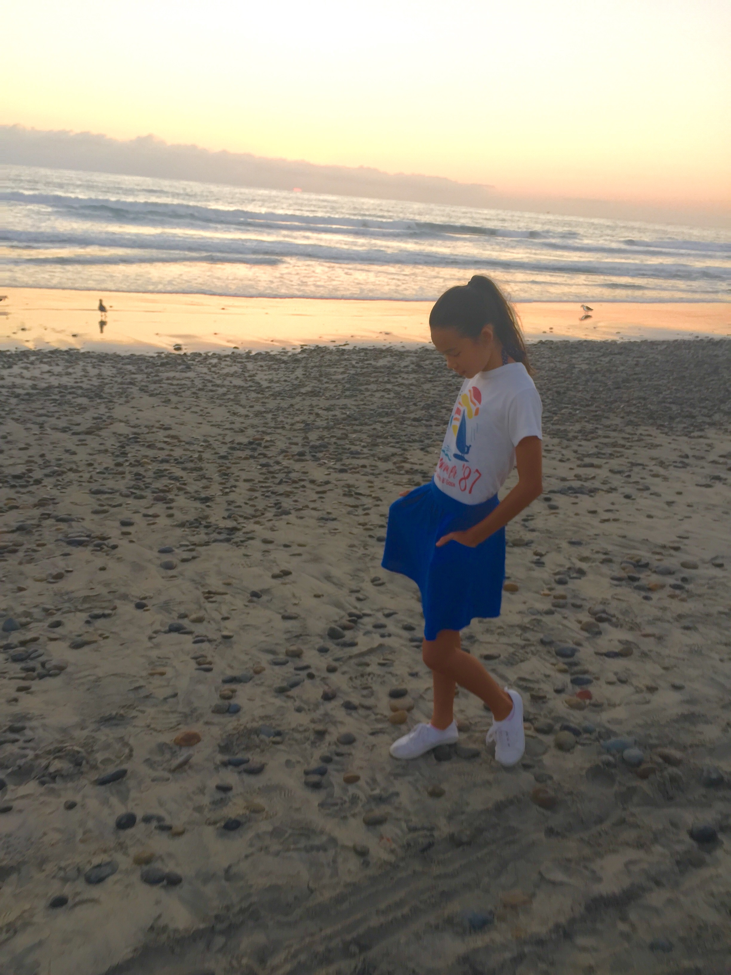 What I have on is a vintage shirt from Osh Kosh 1987. It’s super simple and cute. I paired it with a blue skirt that matches perfectly with the shirt. To make the outfit complete, I wore white shoes. It’s time to move on for the fall season! Thanks for reading!