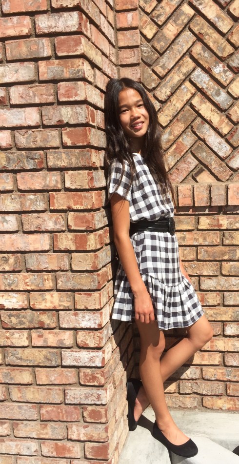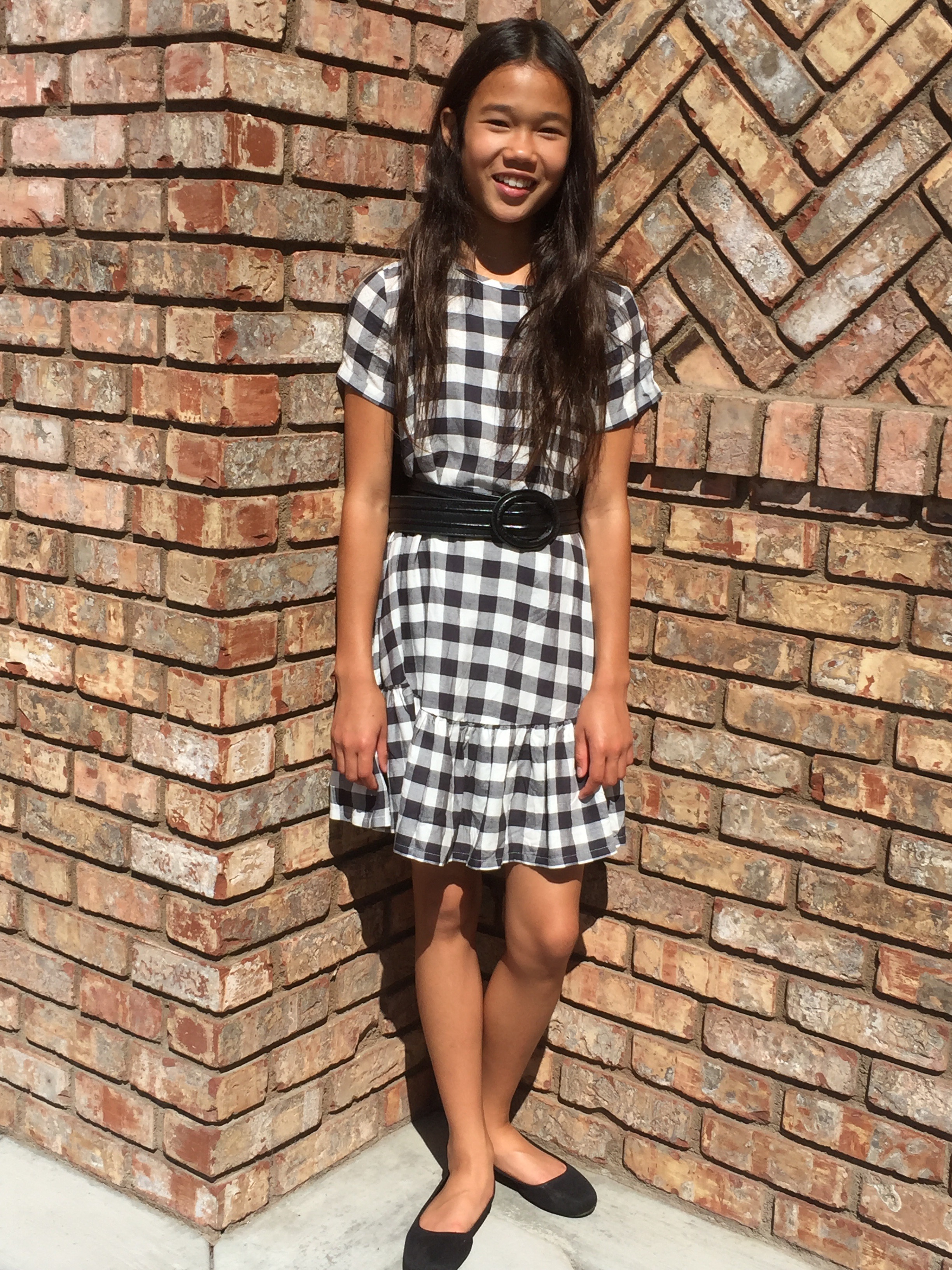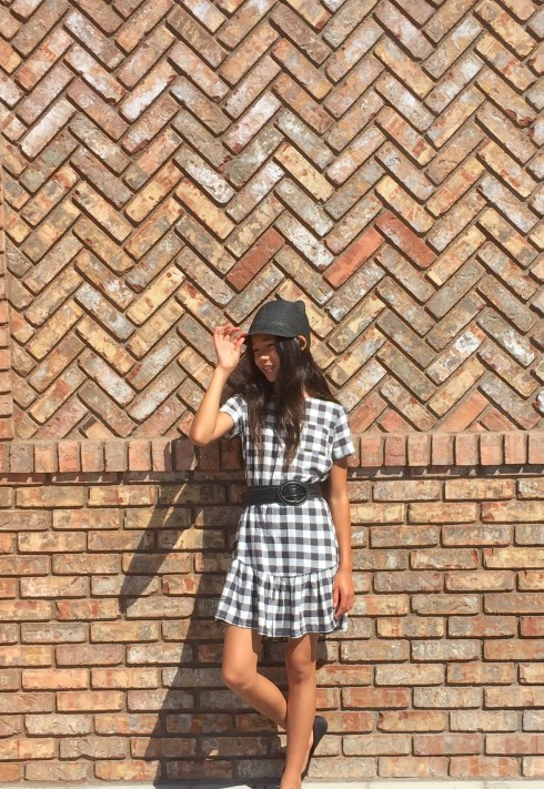 When I think fall, I think of checkered and plaid shirts and dresses. So this dress I’m wearing, I think gives a very fall look. It’s checkered and looks great with a belt.