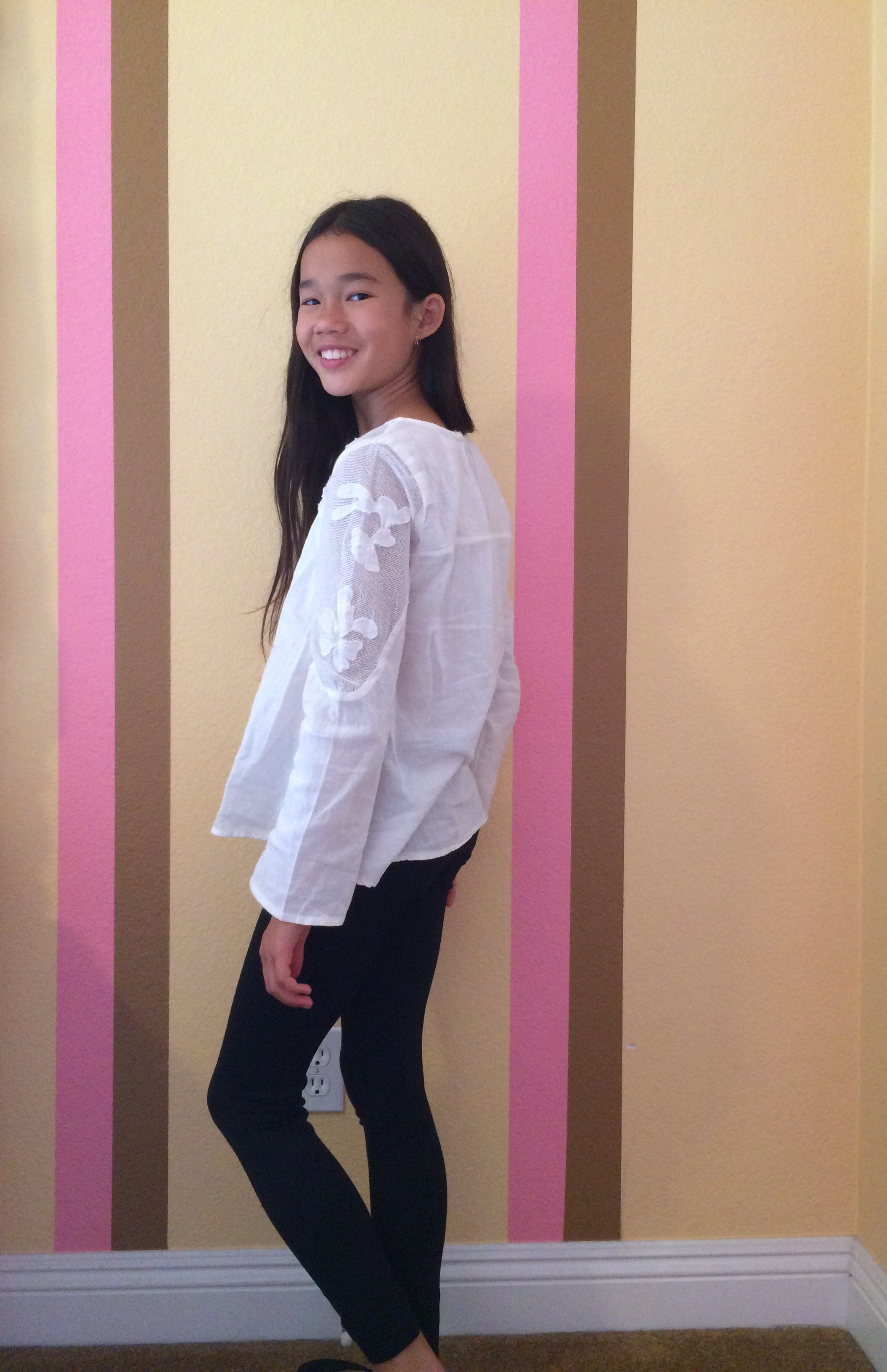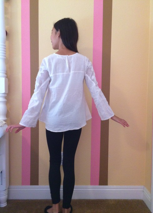 This shirt was a great buy. I got it for $8 at Zara! The beautiful lace flowers compliment the outfit very nicely. The material is loose which makes it so comfortable. The shirt also works with jeans.