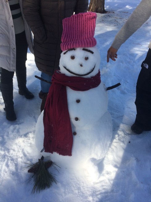 We were driving to a snowboarding and skiing place with a lot of people and one of our cars started skidding, so we turned back and headed back to the house we were staying at and starred sleding in the huge backyard. Then we had this crazy idea to ski in the backyard! We had all the gear in our car, so we brought out the gear and skied. We also made a cute little snowman!