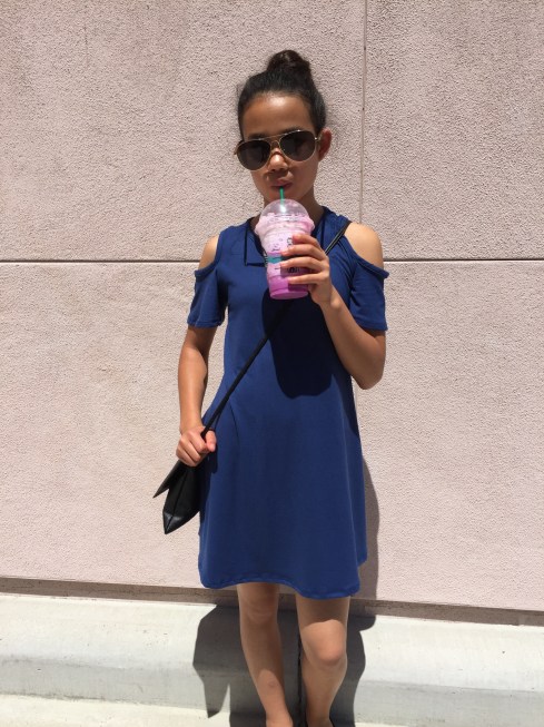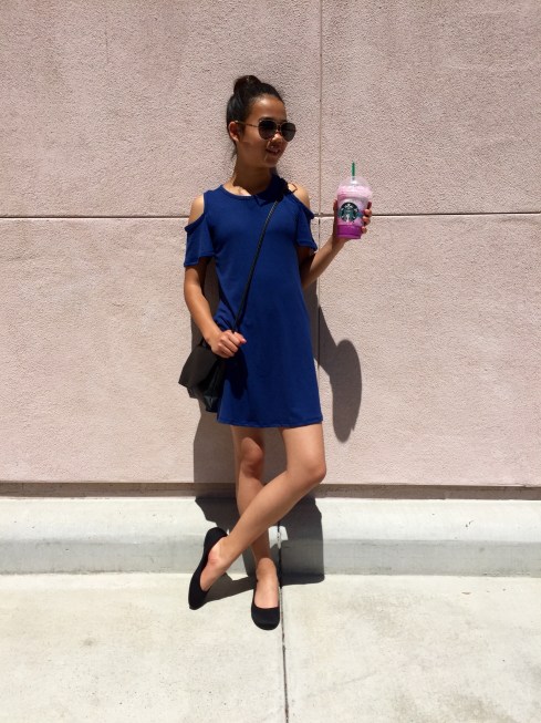 I absoulutely love this dress! The fabiric is so soft and it was only $8. I like how the off the shoulder design gives it a nice look. To show off the nice back design I wore a bun.